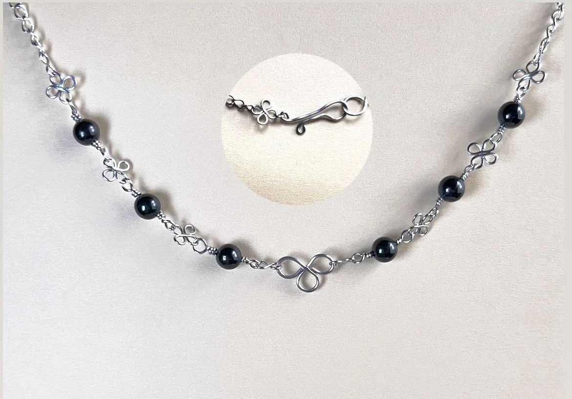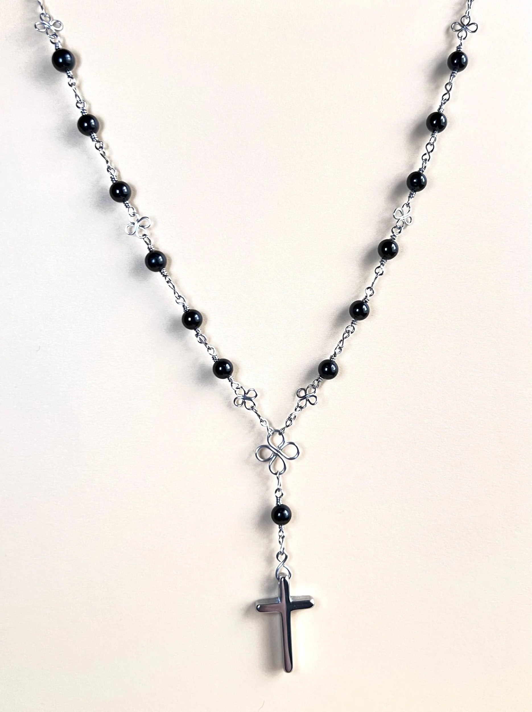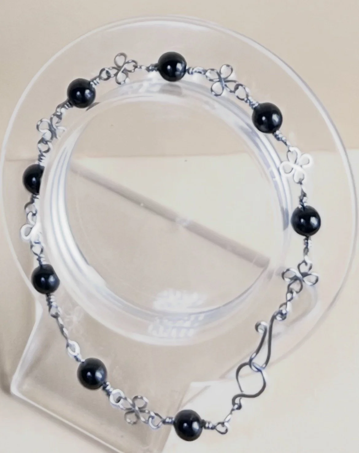 This handcrafted piece combines the sleek durability of stainless steel with the powerful, grounding energy of natural black tourmaline. Each bead is carefully selected and arranged by hand, creating a design that feels bold, protective, and deeply intentional. After assembly, the piece is gently infused with Reiki to enhance the natural shielding and stabilizing qualities of black tourmaline.