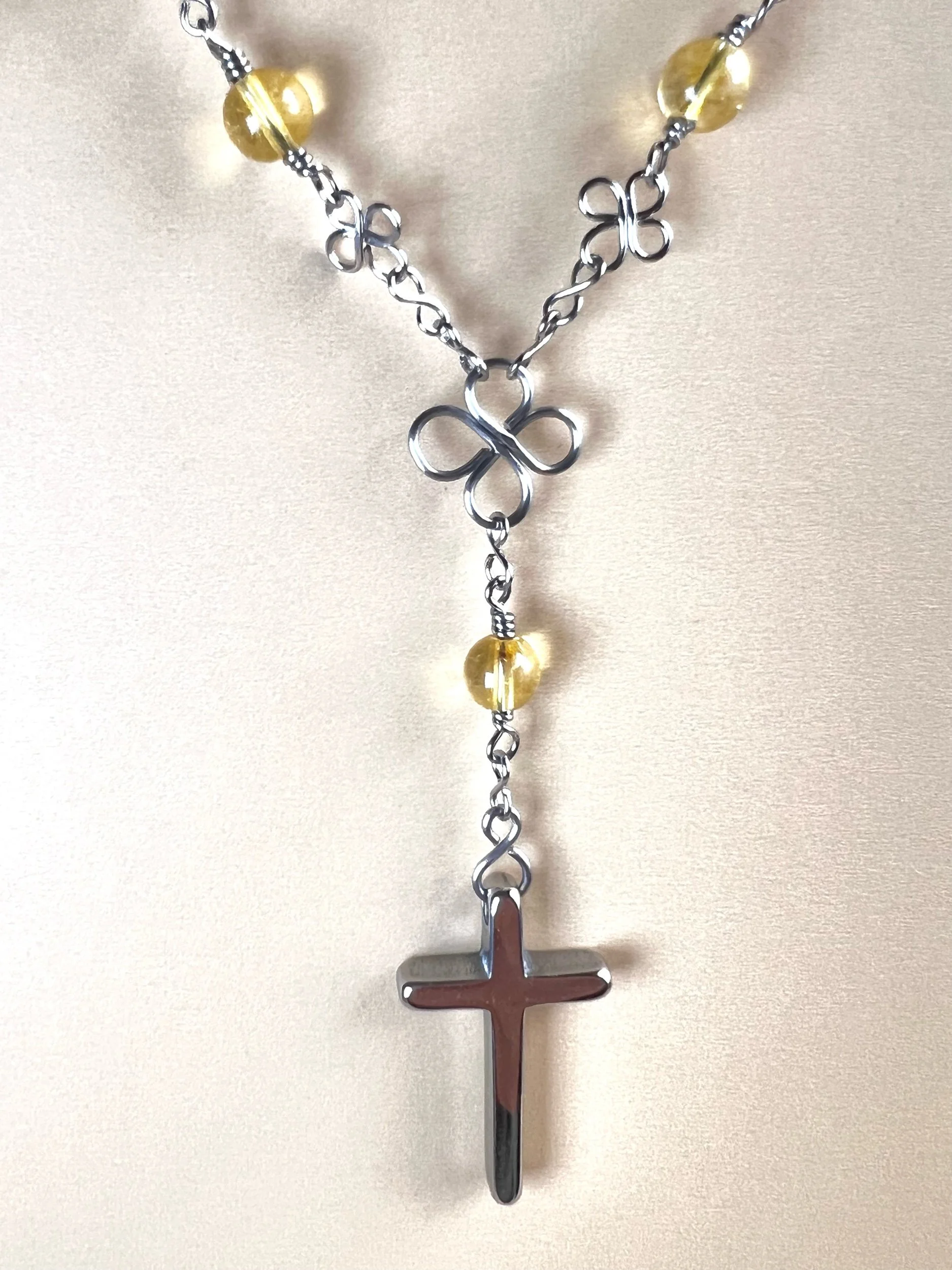The combination of stainless steel and citrine creates a necklace that’s modern, meaningful, and full of uplifting energy. The stainless steel cross adds a timeless spiritual touch, while the citrine beads bring brightness and positivity to your everyday wear. Handcrafted with care, this piece is designed to support joy, abundance, and a sense of empowered clarity throughout your day.