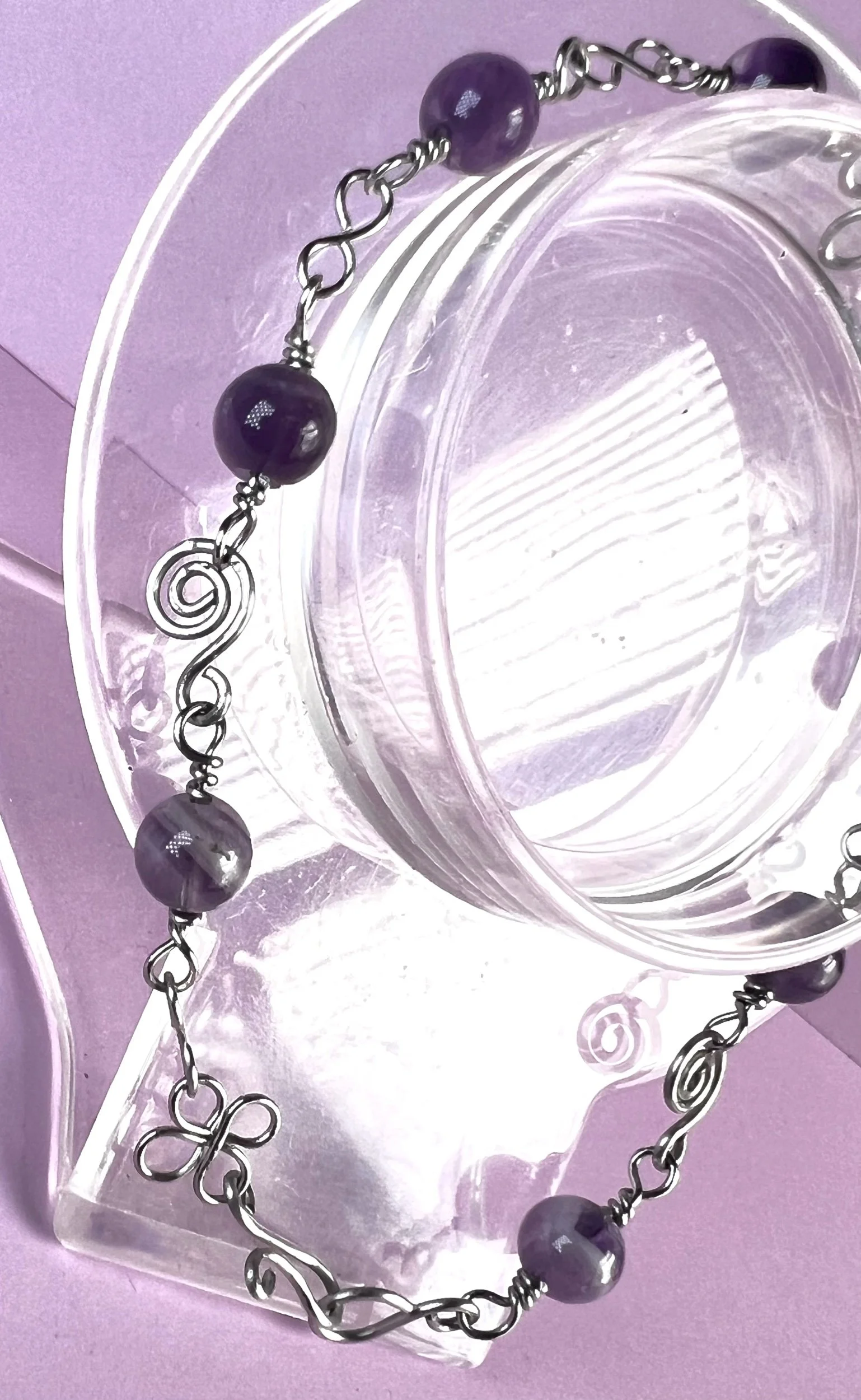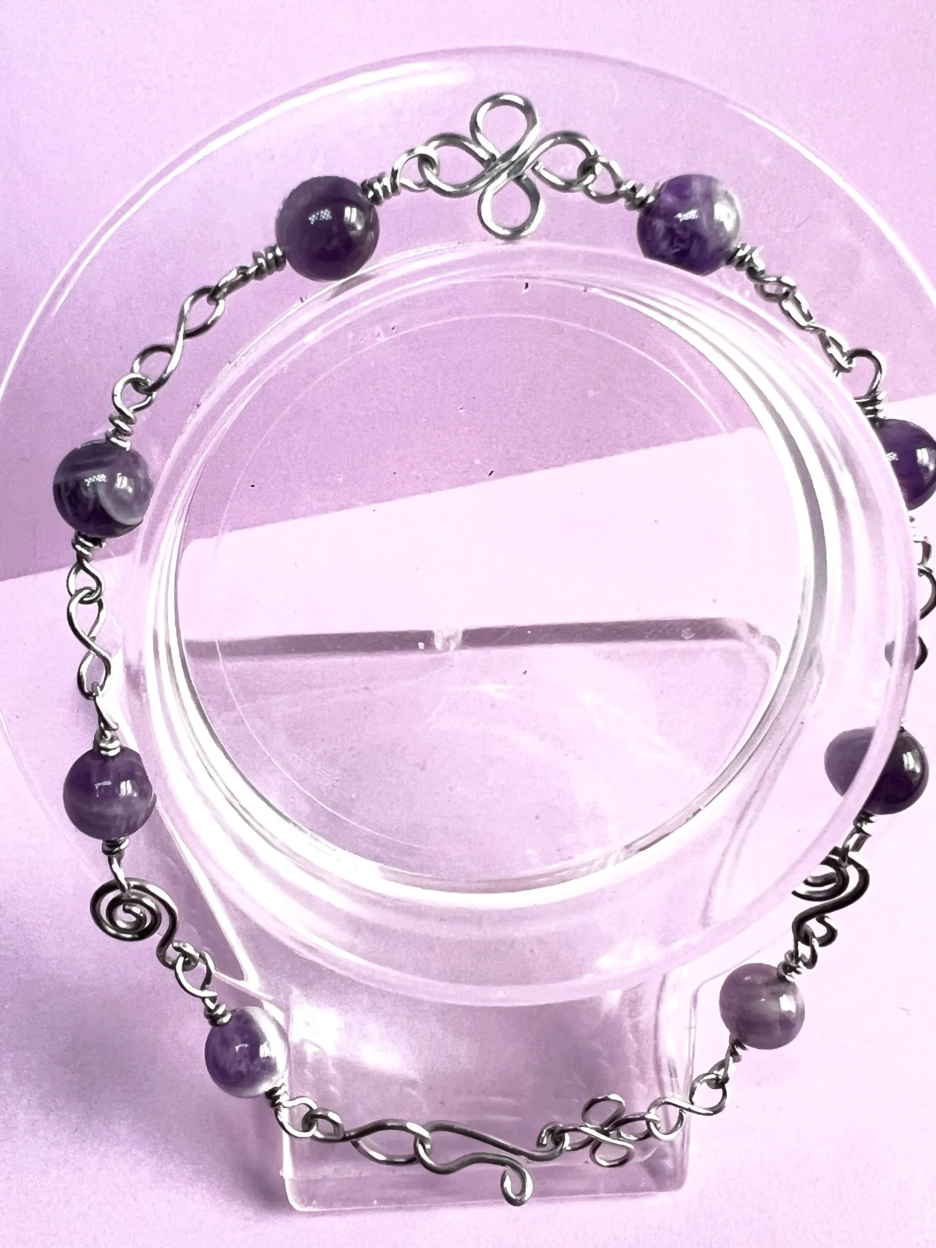 The combination of stainless steel and amethyst creates a piece that’s modern, durable, and deeply meaningful. Lightweight, comfortable, and handcrafted with intention, this bracelet is designed to support calm, clarity, and spiritual balance throughout your day.